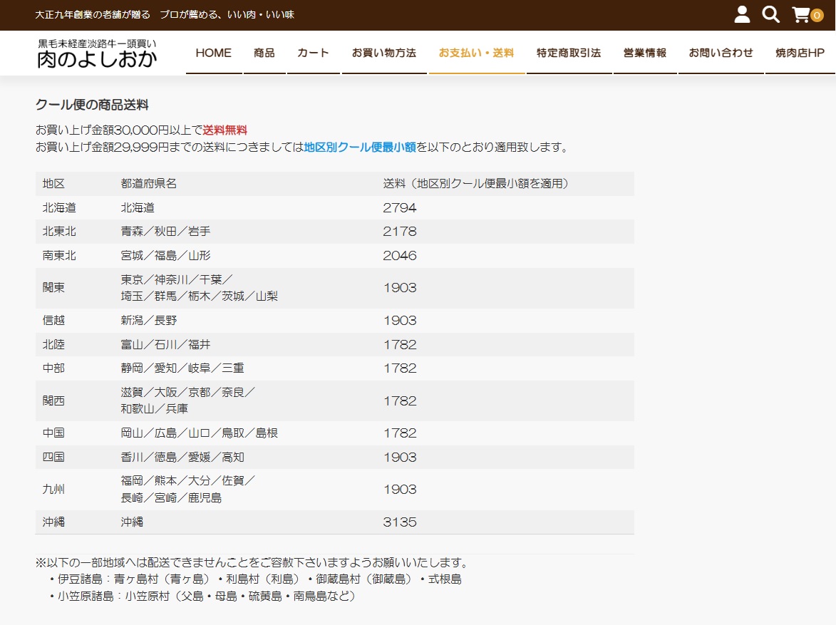 当店ではネットショップ限定でご購入金額が30,000円(税込)以上となる場合、配送料を無料としておりますが、